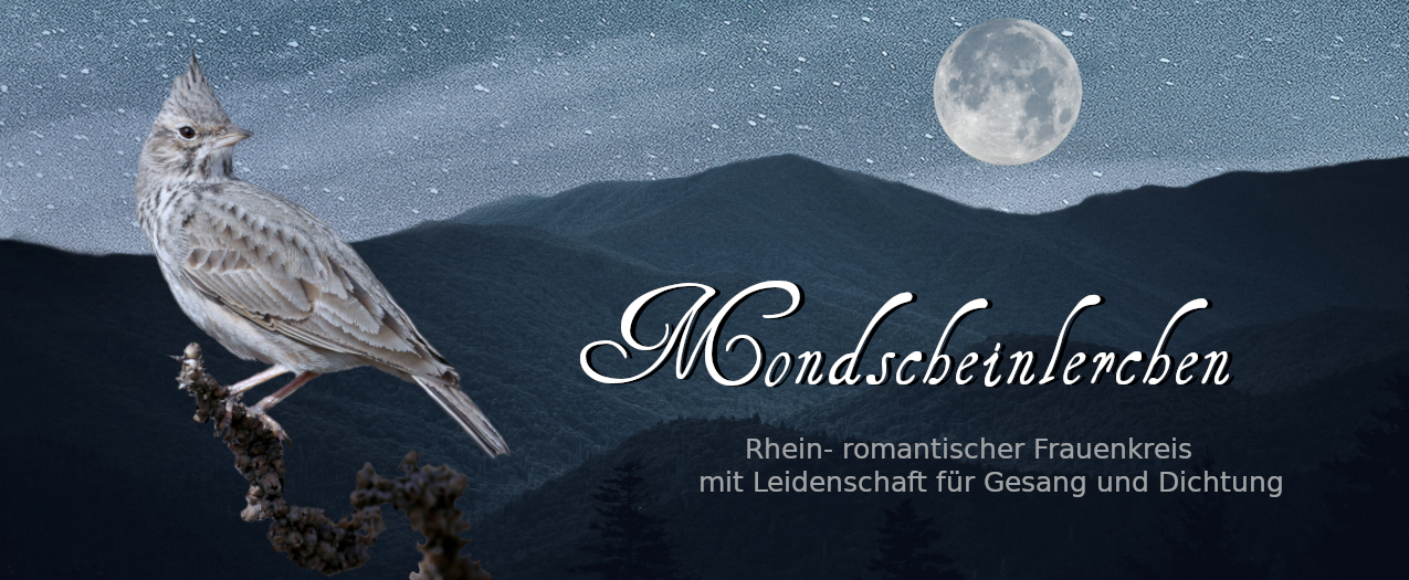 Die Mondscheinlerchen sind eine Gruppe von Frauen, die sich zum Singen und gemeinsamen Genießen alter Gedichte treffen. Ihre Lieder erzählen ebenfalls Legenden von den Seven Hills und romantische Geschichten aus alten Zeiten. Ihre Seite befindet sich noch im Aufbau. Bitte versuchen Sie es zu einem späteren Zeitpunkt noch einmal.
